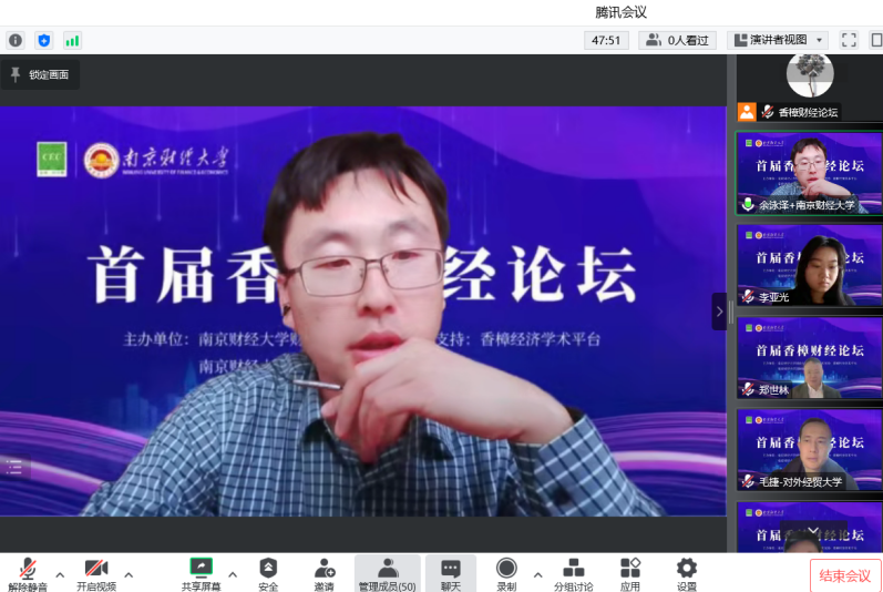 主会场开幕式合影2022年11月27日,以“新发展格局下财税政策与产业高质量发展”为主题的首届香樟财经论坛在线上成功举办。本届论坛由亚洲色情 和国际经贸学院主办,香樟经济学术圈进行学术支持。组委会共征集到百余...