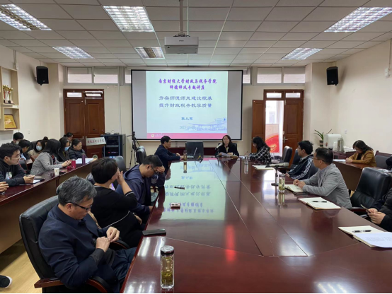 的邀请,校关工委五老讲师团成员张从军教授为学院教师作题为《夯实师德师风建设根基,提升财政税务教学质量》的“初心讲堂”·师德师风专题讲座,张从军教授是财大二级教授、博士生导师及江苏省教学名师,并享受国务院特殊津贴,讲座安排在仙林校区德经楼408会议室举行。讲座由院党委陈苏书记主持,李婧副教授等老师与张教授进行了互动交流。