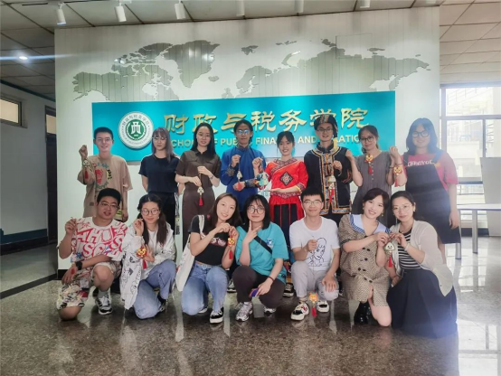 艾蒿一束,飘幸福清香;香粽一串,携甜蜜相伴。香囊制作完成后,师生们共同品尝新鲜出炉的热腾腾的粽子,一边品尝,一边畅聊各民族的端午习俗。来自土家族的李心莲同学表示,土家族过端午节分为“头端午”(即农历五月初五)、“中端午”(即农历五月十五)、“末端午”(即农历五月二十五),过端午节时一般只接已出嫁的姑娘、女婿和至亲好友来家做客,主人家用准备好的粽子、艾蒿蛋等丰盛的饭菜款待客人。