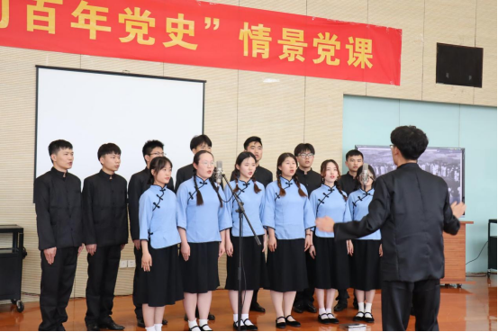党委副书记李慕原主讲。此次情景党课集歌唱、朗诵、情景歌舞等形式为一体,谱写党百年历程的别样风貌,让大家在歌声中重温百年党史,挖掘歌声背后的红色故事,传承红色基因。