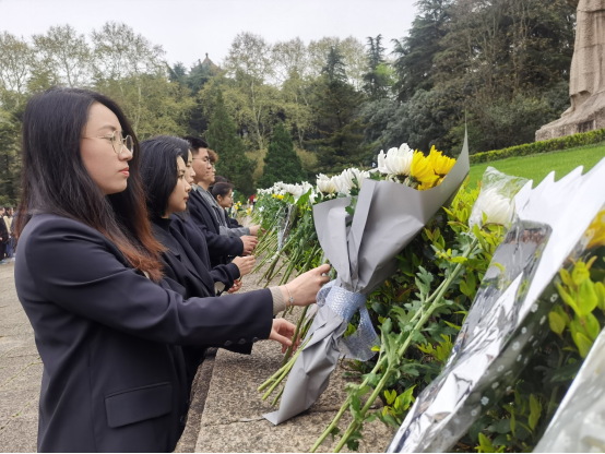学生党员在学院党委副书记李慕原的带领下来到南京市雨花台烈士陵园缅怀先烈,一同上了一堂生动的“党史实景学习”课。