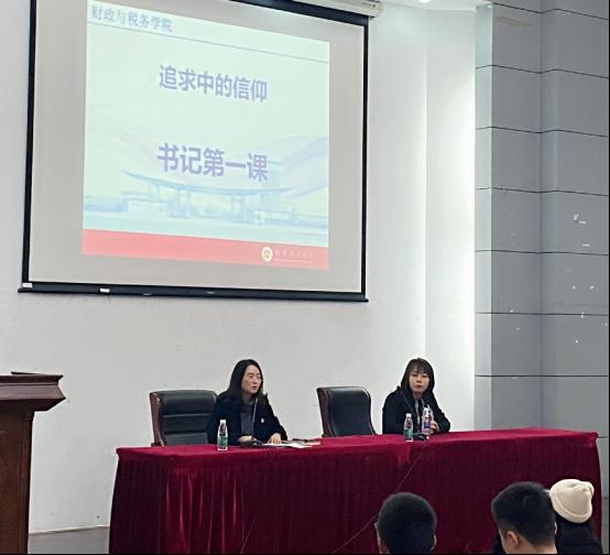 仙林校区德经楼二楼报告厅开讲“书记第一课”。学院党委书记陈苏为财税学院2020级新生讲授主题党课,围绕“寻找,挫折,行动,安全,信仰”五个关键词,引导新生思考大学规划,筑牢人生信仰。