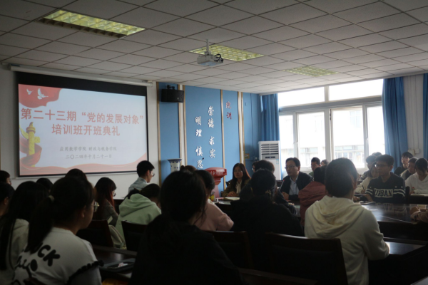 和应用数学学院联合开展的2024-2025学年第一学期“党的发展对象”培训班开班典礼在德业楼508会议室举行。学校“五老”讲师团成员、教授胡连生,应用数学学院党委书记殷建新、党委副书记孙晓飞,我院党委副书记王翔及全体培训班学员参加了开班典礼。开班典礼由应用数学学院党委书记殷建新主持。