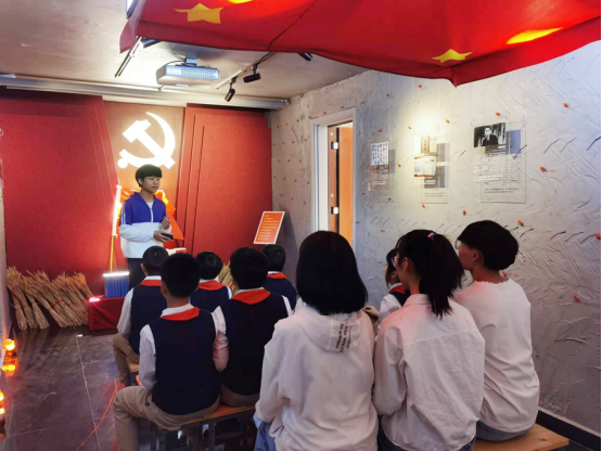 青马班成员、入党积极分子周荣升同学在馆内为少先队员们上了一堂关于周总理的外交智慧和“小红梅”的志愿精神故事的“微党课”。少先队员们听了大学生哥哥的故事,也纷纷发表了自己的感想,他们的言语中无不透露着对共产主义事业的热爱以及作为新一代少年的满腔热血。参观结束后,同学们带领少先队员在“小红梅”信仰生活空间观看了讲述雨花英烈丁香的故事的微电影。