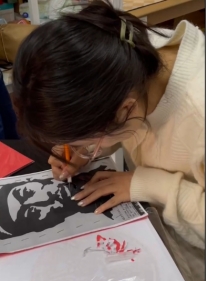 此外,还有诸多学子们用多彩的方式呈现了历史长河中璀璨的青年形象。小刀沿着线条划过阴影,勾勒出一副神情坚毅的面孔。税收2102宋子慧同学手持红色剪影,展示她亲手刻画的抗日英雄杨靖宇。“小时候常听爷爷奶奶为我讲述杨将军抗击日寇的英勇事迹,如今轮到我用剪纸的方式,向大家继续讲述这个故事。”财政2002班的冷思逸同学,将多部红色影视作品中的青年角色进行混剪,一幕幕镜头拼凑出了历史与今天的青年群像,配以她铿锵有力的旁白:“磨难造就中国青年挺立的脊梁,哪怕前路荆棘密布,刀光剑影,我们也有必胜的决心!”青年人的声音振聋发聩,警醒无数人勇敢接起时代的接力棒,担当民族复兴的伟大使命,为实现“中国梦”不懈拼搏。