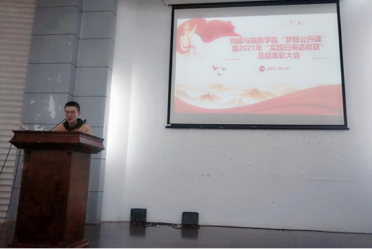 团委张周驰老师向同学们总结了2021年度的暑期实践工作,介绍学院社会实践工作的总体思路及组织实施过程,对今年在社会调研、顶岗实习、双创和“挑战杯”立项以及外宣报道等方面取得的成绩和亮点也进行了汇报。