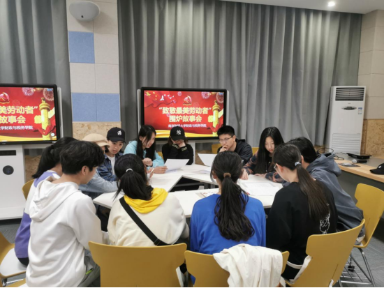 的师生们在仙林校区博文楼101智慧教室开展了“致敬最美劳动者”围炉故事会,师生们围坐一起聆听奉献故事,感悟奋斗真谛,共话劳动精神。