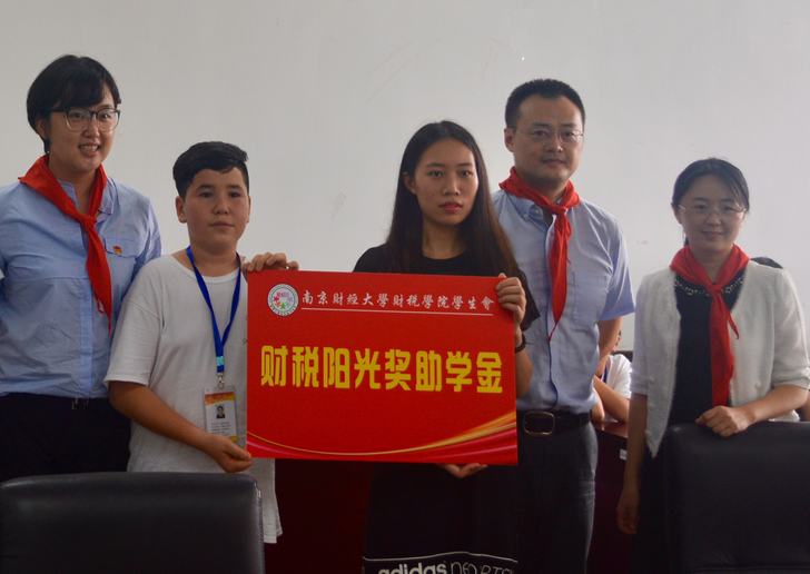 学生会经过前期的充分调研与讨论,向全院学生发起倡议并得到响应。由每年获得奖助学金的同学,自愿拿出不超过奖学金总额8%的钱作为爱心“税”,积少成多,在新疆霍城县团委设立“财税阳光奖助学金”,用以资助、奖励品学兼优家庭贫困的小学生。把爱心传递的同时,也把优秀的品质传递下去。