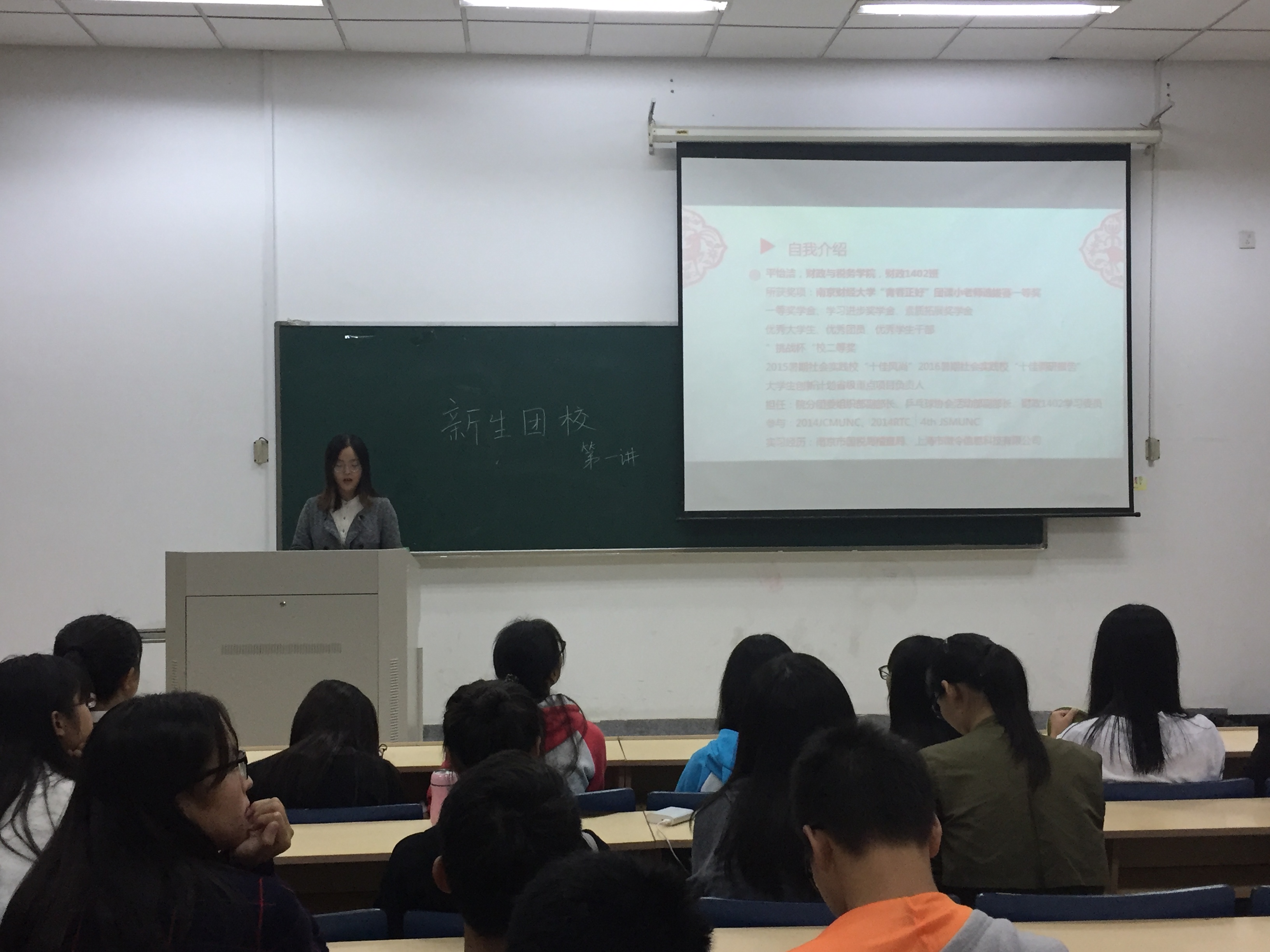 16级税收学专业新生,由财政1402班的平怡洁主讲,16级税收学新生参加聆听了课程。