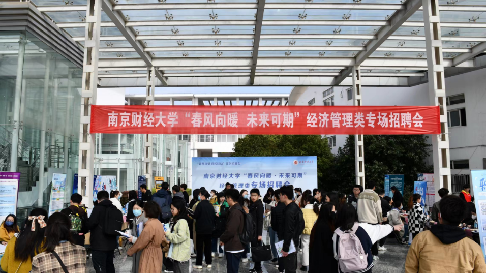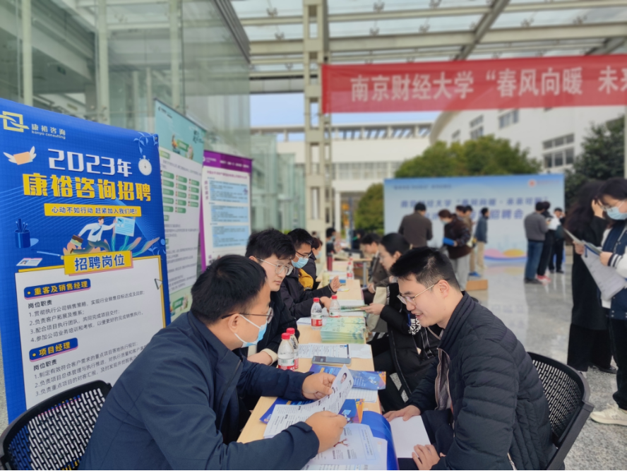 联合校就业指导中心在大学生活动中心广场举办“春风向暖,未来可期”经济管理类专场招聘会。