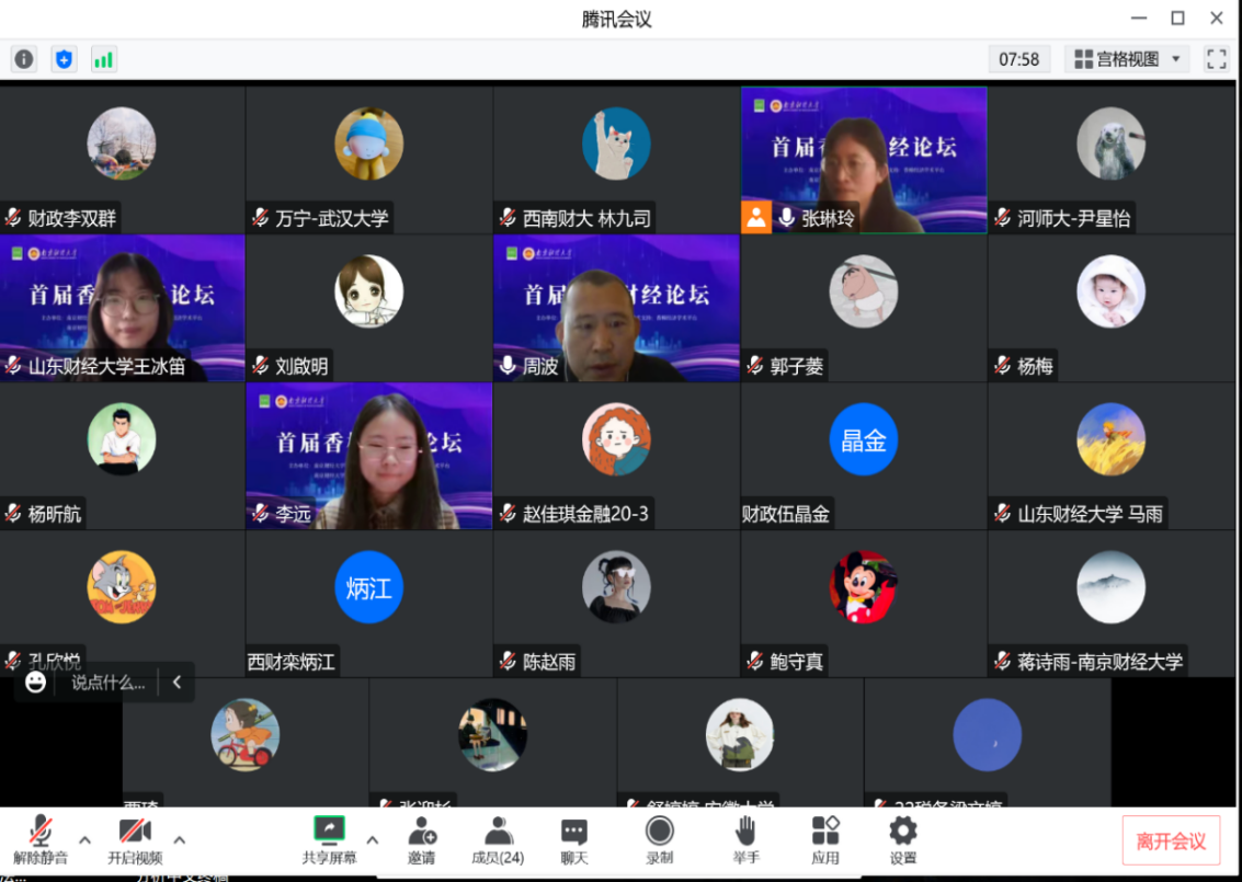 毛捷教授指出,线上论坛的举办是适应疫情常态化防控的重要方式,显著地促进了学术交流活动。感谢香樟财经论坛组委会的信任,将下一届论坛交予对外经济贸易大学国际经贸学院举办,承诺尽全力办好论坛,为财政、金融以及国贸领域的中青年学者提供良好的学术交流平台。