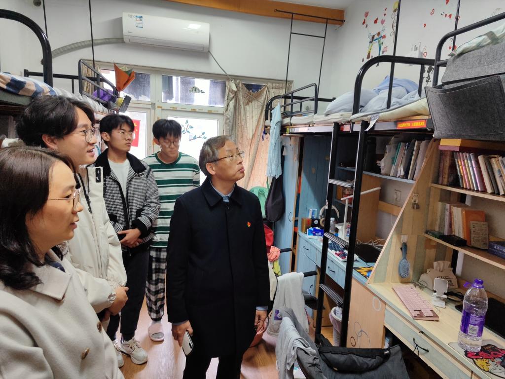 在结对学生宿舍,黄步龙副校长详细询问了同学们的学习和生活情况以及对学校、学院发展的意见和建议,耐心解答同学们提出的各类问题。