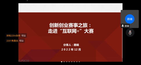 为做好学校第九届“互联网+”大学生创新创业大赛暨省赛选拔赛备赛准备工作,加强师生联动,强化创新创业能力训练,增强高校学生的创新能力和在创新基础上的创业能力,培养国家建设需要的适应性创新型高水平人才。12月6日下午2点我院举办了“互联网+”创新创业专题线上讲座。本次活动邀请了南京大学路端老师为大家讲解,并给予同学们关于创赛方面的建议。讲座由亚洲色情
