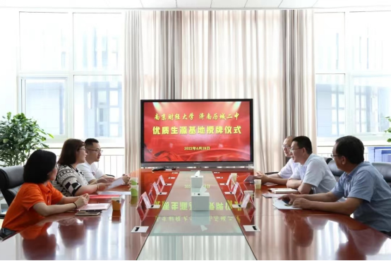分别在山东省济南市济钢高级中学、济南实验高级中学(济钢高中兴隆校区)、济南一中和济南历城二中建立优质生源基地并举行签约仪式。财政与税务学院党委副书记李慕原,青年教师战略博士、李亚婧博士代表学校来到四所中学参与座谈并开展招生宣传。四校相关校领导出席“优质生源基地”签约仪式。