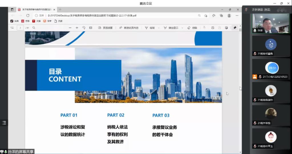 师生做了题为《关于税务师参与税务行政复议若干问题的探讨》的线上学术讲座。