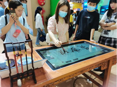 随着展馆穿越百年时光,大家来到与当下“零时差”的中国特色社会主义新时代。为重点展示党的十八大以来,江苏省推动高质量发展走在前列、建设“强富美高”新江苏、高水平全面建成小康社会的重大成就,展览专门布置了“六个高质量发展”展台,并设有汽车、人工智能、水生态检测系统等实物展品。