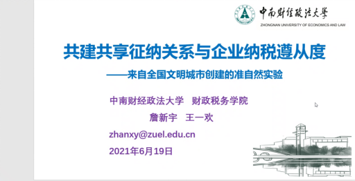 、公共财政研究中心、中国财税治理研究院邀请,中南财经政法大学博士生导师詹新宇教授通过腾讯会议,作了题为“共建共享征纳关系与企业纳税遵从度——来自全国文明城市创建的准自然实验”的线上学术讲座。讲座由亚洲色情