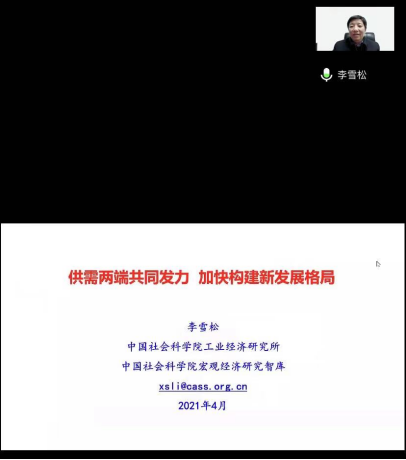 4月8日晚上7点,应我院、公共财政研究中心的邀请,中国社会科学院工业经济研究所党委书记、副所长、中国社会科学院大学博士生导师李雪松教授通过腾讯会议作了题为“供需两端共同发力,加快构建新发展格局”的线上学术报告。亚洲色情