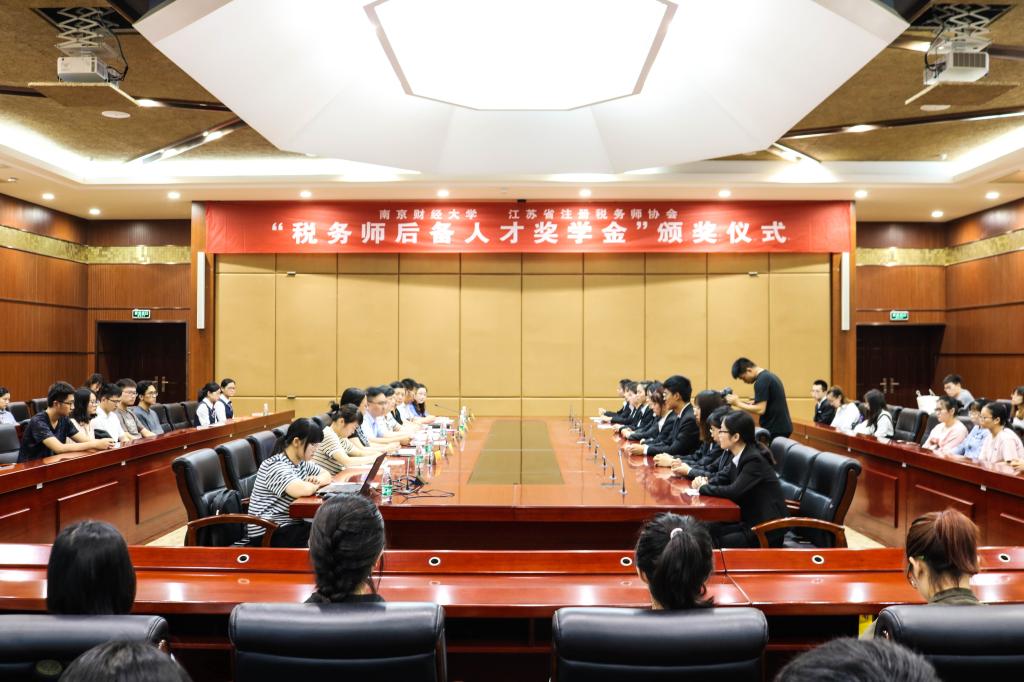 于工科楼会议室举行2019年度“税务师后备人才奖学金”捐赠暨颁奖仪式。江苏省注册税务师协会会长周苏明,副会长于阜宁,办公室副主任徐华敏,亚洲色情