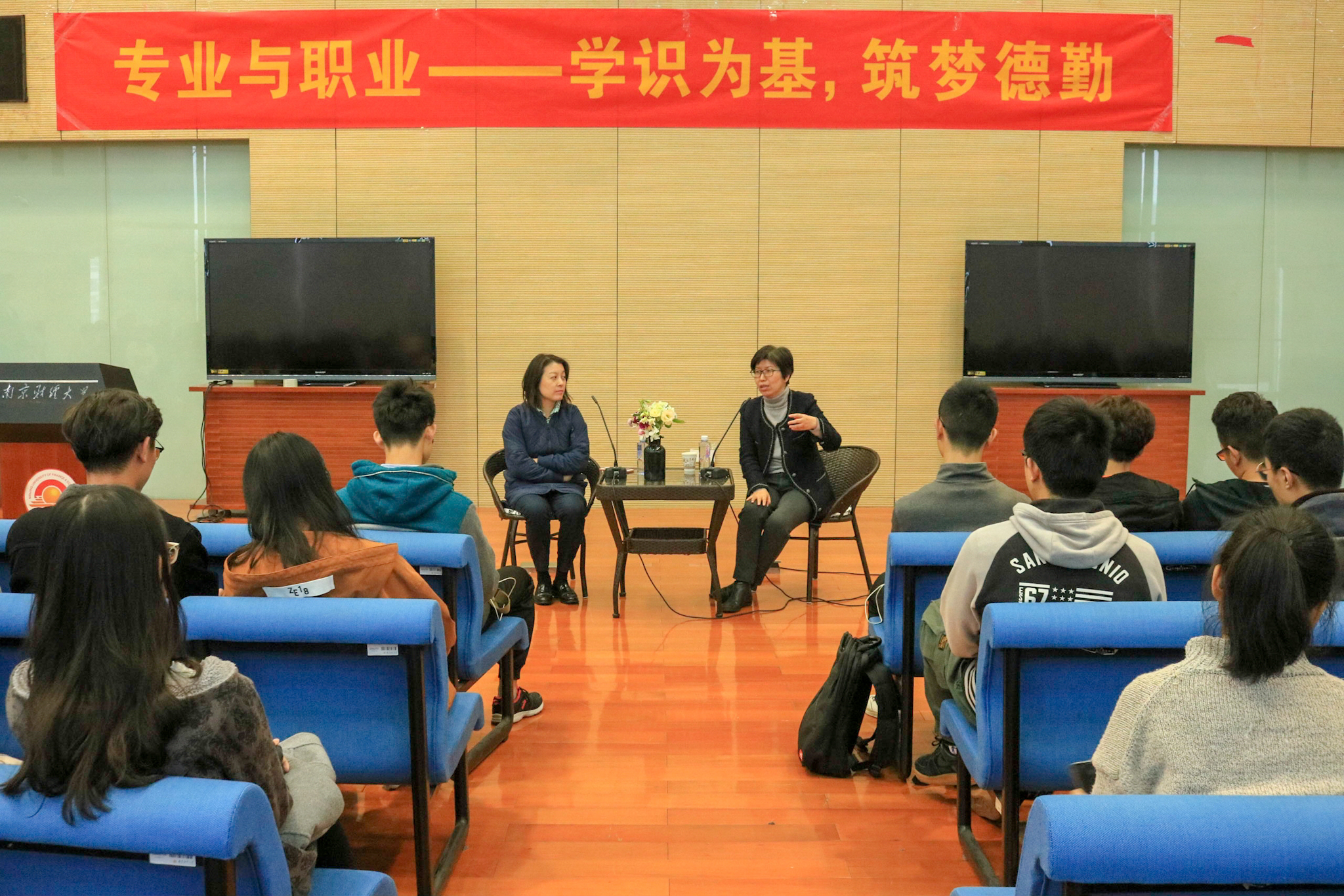 在图书馆四楼世界之窗举办了以“专业与职业”为主题的就业指导讲座。南京德勤税务部总监许虹及南京德勤人力资源高级经理孙嘉受邀与学生交流。