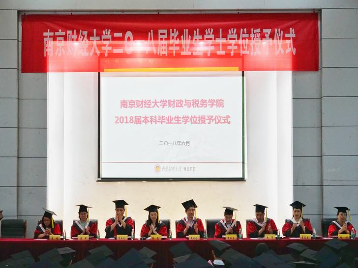 最后,主持人宣布学位授予仪式结束,全体起立,奏唱《南财大之歌》。这一刻,不仅象征着2018届毕业生四年共同的旅程终结,还象征着他们新的人生征途正式起航。