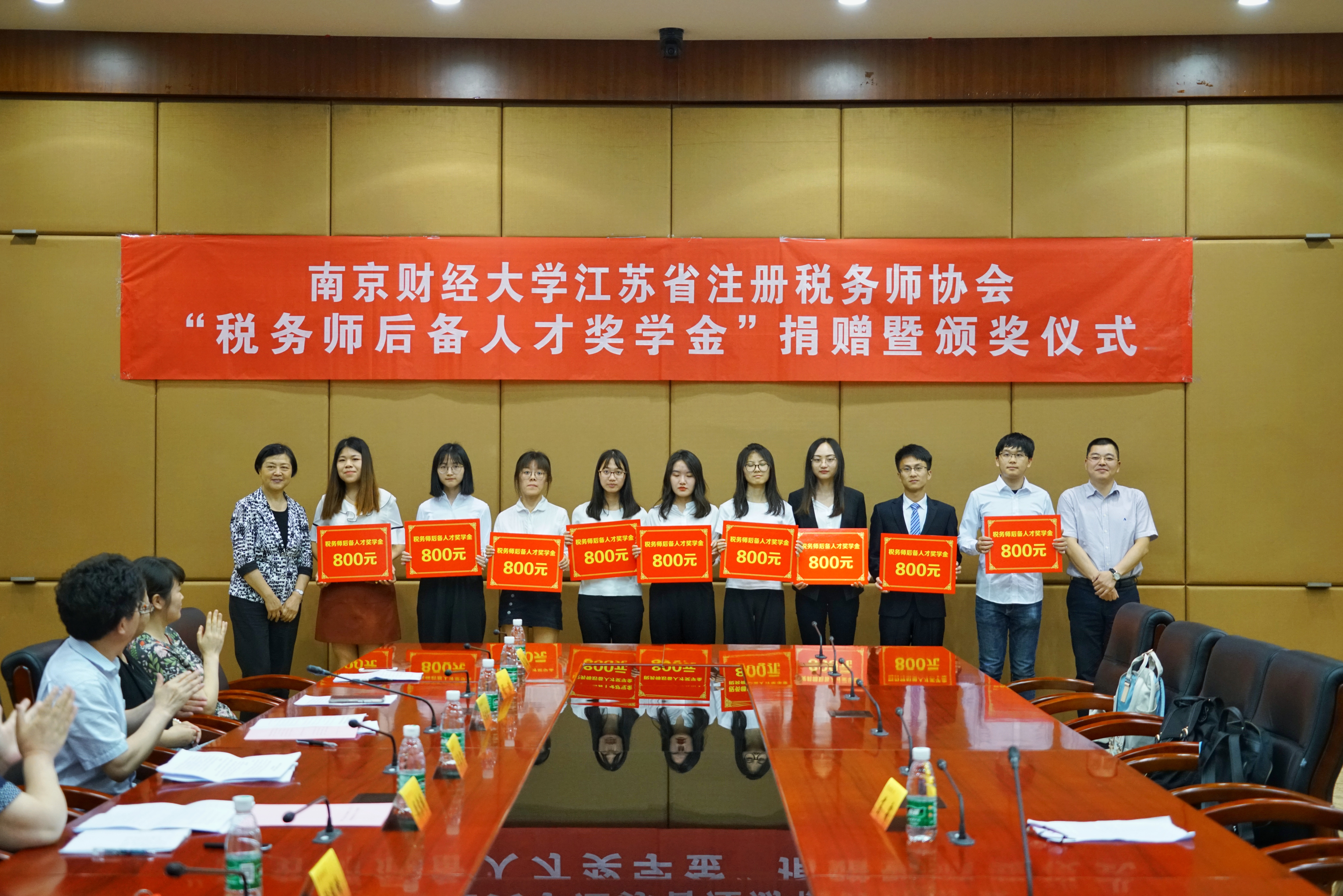 与江苏省注册税务师协会签订 “税务师后备人才奖学金”捐赠协议,并于工科楼会议室举行2018年度奖学金颁奖仪式。江苏省注册税务师协会会长周苏明,副会长于阜宁,办公室主任徐华敏,亚洲色情