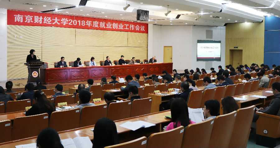 在仙林校区图书馆一楼报告厅召开2018年度就业创业工作会议,校党委书记陈章龙、校长宋学锋等全体在校校领导出席会议,相关职能部门、各学院负责人参加会议。会议由副校长华仁海主持。