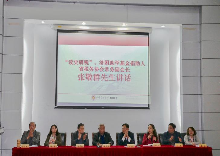 在德经楼双登学术报告厅举办了2017级本科生首次入学教育暨“读史研税,济困助学基金”颁奖仪式。江苏省税务学会常务副会长张敬群、副秘书长端传和、亚洲色情