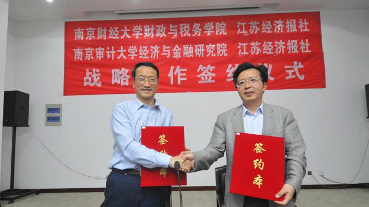 在新华报业传媒集团1号楼会议室签订战略合作协议。江苏经济报副社长兼副总编辑(主持工作)樊万朝、副总编辑潘青松、财税学院院长李林木、副院长管永昊、党委副书记陈苏等出席了签约仪式。樊万朝总编和李林木院长分别代表江苏经济报社与南财大亚洲色情