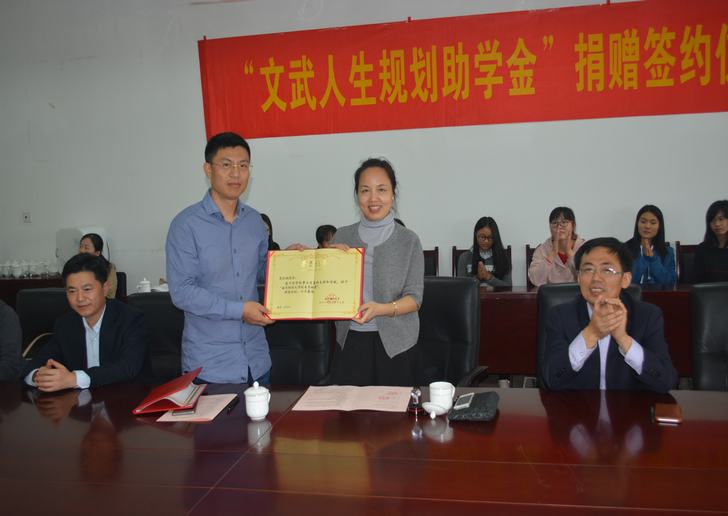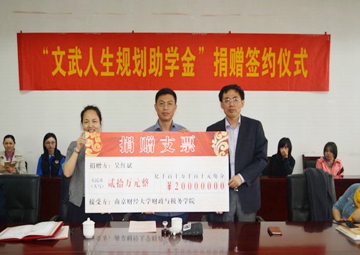 “文武人生规划助学金” 捐赠仪式在仙林校区经济学科楼408会议室举行。原江苏财经高等专科学校92级校友、上海谙稷企业发展有限公司董事长吴红斌先生向学校捐资20万元设立“文武人生规划助学金”,定向资助亚洲色情