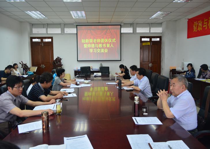 学院张金龙书记全面回忆了陆新葵老师在校期间的工作业绩。号召全院教师向陆新葵同志学习:教学业务,兢兢业业,一丝不苟;关怀学生,言传身教,诲人不倦;团结同事,心胸宽广,襟怀坦白;行政业务,任劳任怨,不计私利。陆新葵老师在平凡的工作岗位上,以学院发展大局为重,是教师中的“粘合剂”,是学生的引路人。这些成绩的取得都源于他对教育教学的热爱。学院的发展凝聚着陆新葵老师的心血与奉献,希望陆新葵老师一如既往的关心与支持学院事业的发展,使学院各项工作迈上新的台阶。