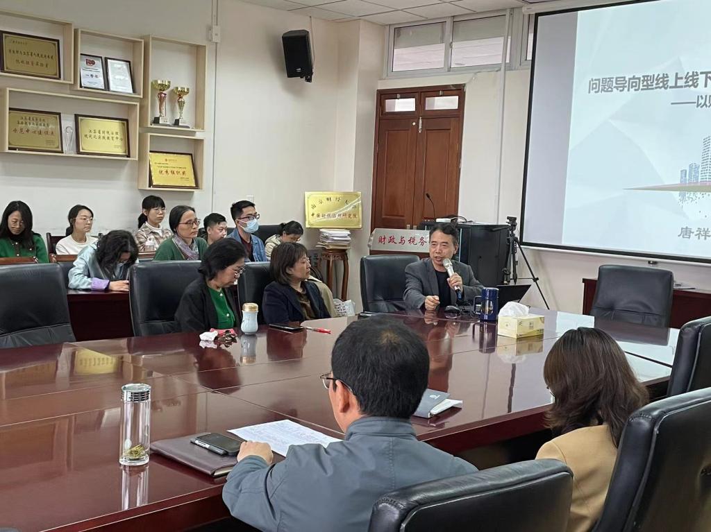 首先,唐教授以如何使课程内容有助于学生工作和综合能力提升、如何引导为切入点,认为导向型问题是一种情境,要构建以学生为中心的课程体系,并通过财政学课程中涉及的经济和财政现象,举例说明对学生“发现问题——分析问题——解决问题”能力培养的方法。