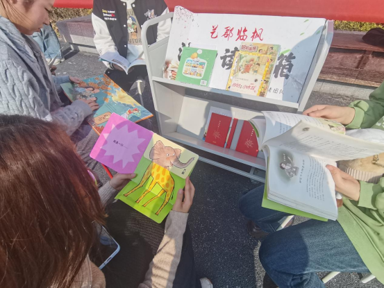 通过先行开展的“爱心税”活动募集到数十本儿童读物,于社区设立“流动读书箱”。在流动的“爱心书角”里,我们可以看见社区孩子和大学生们静默共坐,感受书籍所带来的心灵的宁静,或是共同讨论,为彼此的思考注入新的活力。居民们适时远离城市的喧嚣,静静读一本书,可以对书籍有更深刻的体会。