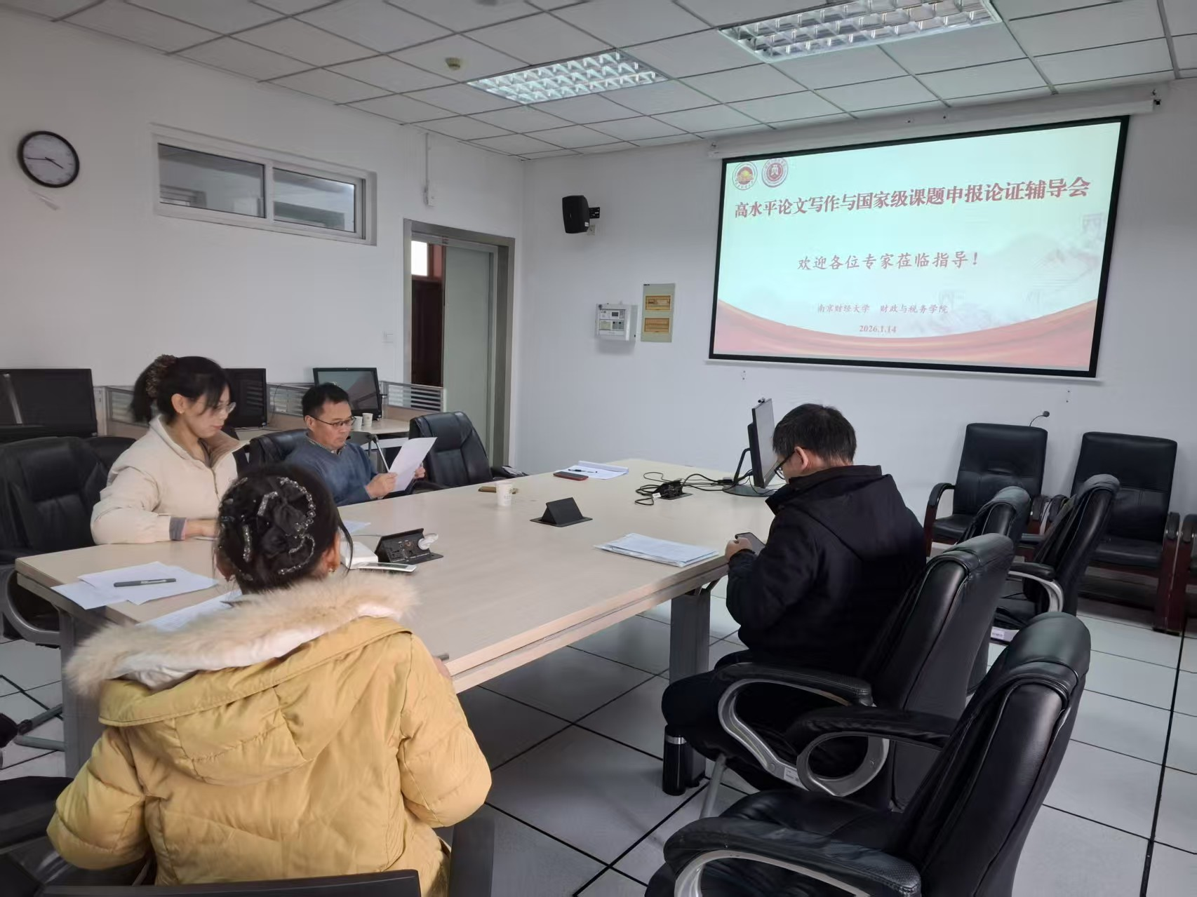 2026年1月14日,我院在公共财政研究中心顺利举办第四轮“高水平论文写作与国家级课题辅导论证会”。本次会议由学院副院长(主持工作)管永昊教授主持。在前三轮系列活动取得良好成效的基础上,本轮辅导会进一步聚焦提升教师学术研究能力,持续推动高水平论文写作与国家级课题申报工作提质增效。