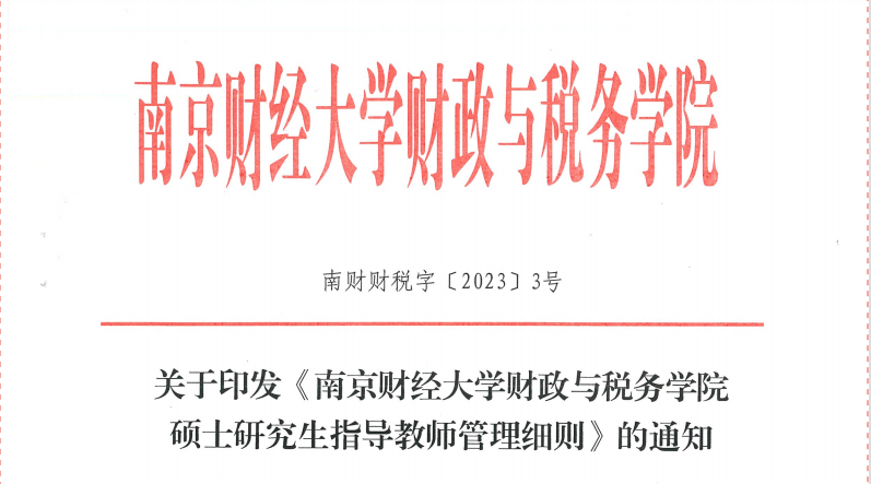 硕士研究生指导教师管理办法》(南财大学位字〔2022〕30 号),结合我院实际,制定《财政与税务学院硕士生导师管理细则》,并予以严格执行。